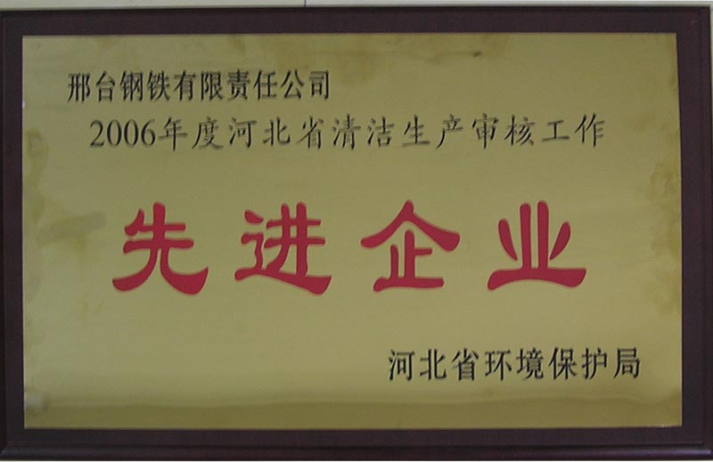 Xingtai Steel won the honorable title of Advanced Enterprise of Clean Production given by Hebei province EPA.