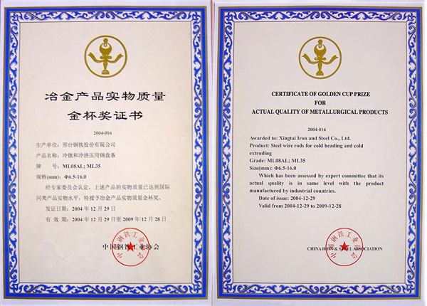 冷鐓和冷擠壓用鋼盤條ML08AL,ML35獲冶金產(chǎn)品實物質(zhì)量金杯獎