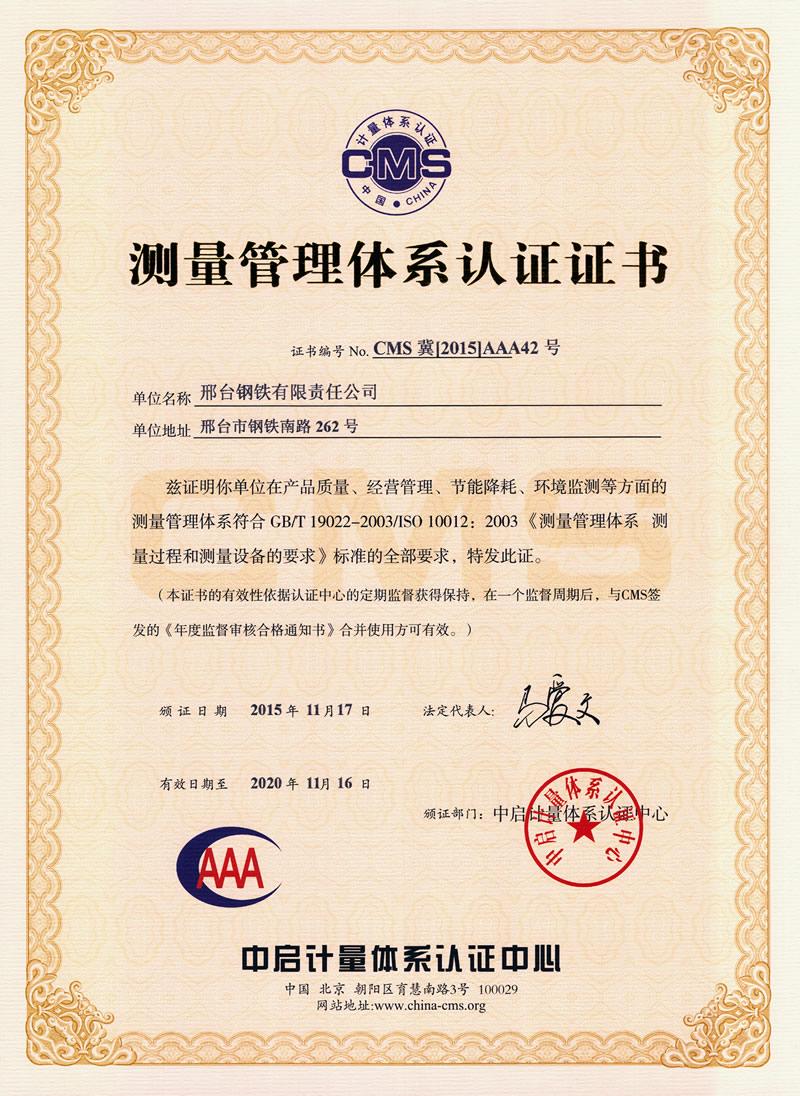 測量管理體系認證證書