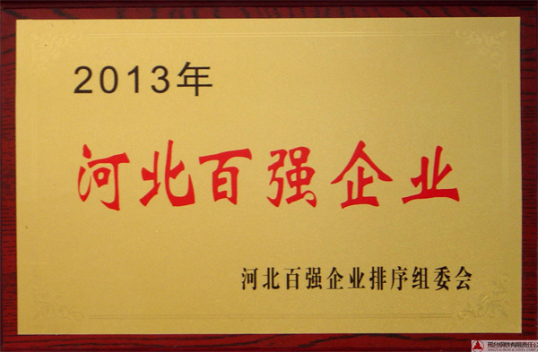 2013年7月20日,邢鋼榮獲2013年“河北省百強企業(yè)”榮譽稱號。