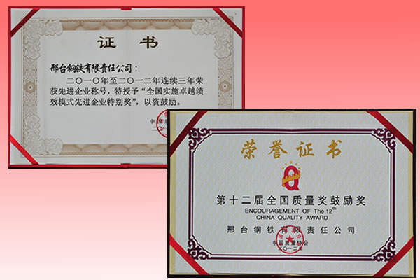 公司榮譽 邢鋼>> 走進邢鋼>> 公司榮譽