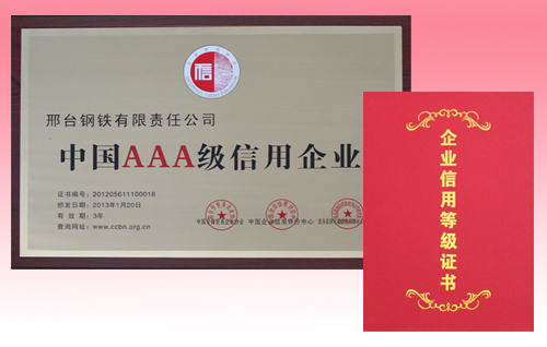 2013年1月20日,邢鋼被評選為“中國AAA級信用企業(yè)”。