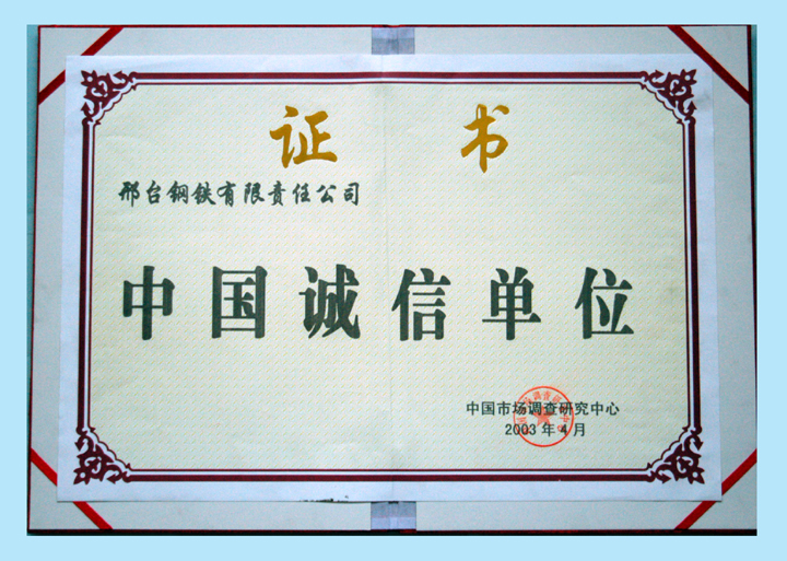 2003年4月,邢鋼被評(píng)為“中國(guó)誠(chéng)信單位”。