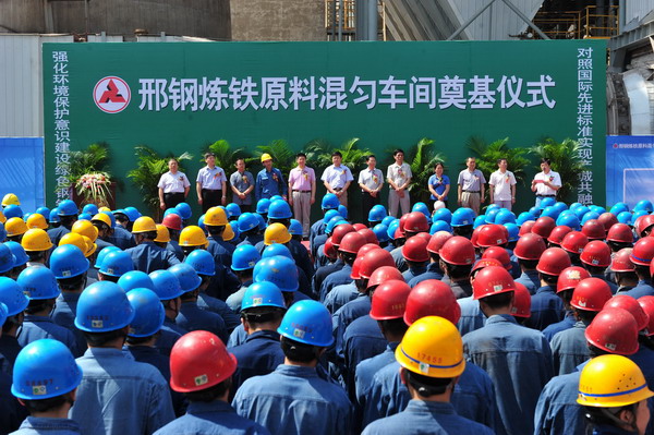 6月9日上午,邢鋼在煉鐵廠原料混勻車間舉行了全封閉式料場奠基儀式?;靹蛄蠄鋈忾]工程是邢鋼2015年實施的14項環(huán)境深度美化治理重點項目之一,邢鋼還將進一步實施噴吹煤全封閉料倉、無組織揚塵面源封閉、廠容廠貌深度治理等一系列環(huán)保項目。