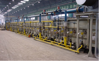 4、索氏體化淬火:采用熔融的鉛作為淬火劑,在600℃左右完成鋼絲組織由奧實(shí)體化向索氏體化的轉(zhuǎn)變。采用燃?xì)夥侄喂?,各段單?dú)控溫,根據(jù)鉛溫要求及時(shí)調(diào)整供熱負(fù)荷。