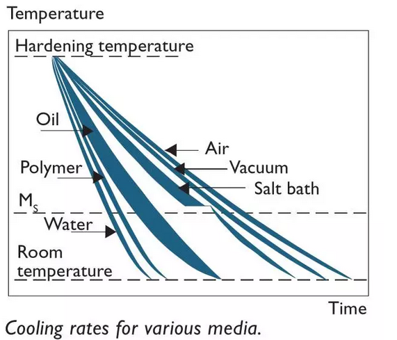 通常應該在快速和慢速淬火速率之間的選擇折衷方案。為了獲得最佳的微觀組織結構和工具性能,淬火速率應該是快速的。為了使畸變最小化,建議使用較慢的淬火速率。