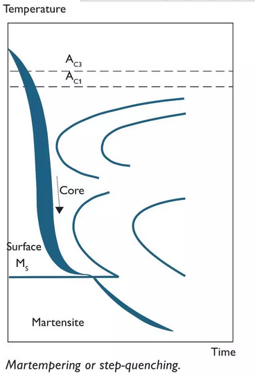 緩慢淬火導致部件的表面和芯之間的較小溫度差,并且不同厚度的部分將具有更均勻的冷卻速率。在低于Ms溫度的馬氏體范圍內淬火時,這是非常重要的。