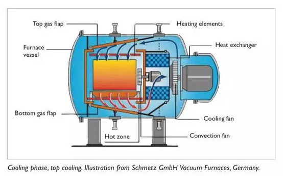 •冷卻將通過大量注入惰性氣體(最常見的是氮氣)進入加熱室,變換方向,達到以前在爐子編程時選擇的過壓。最大超壓是每個爐的標稱特性。