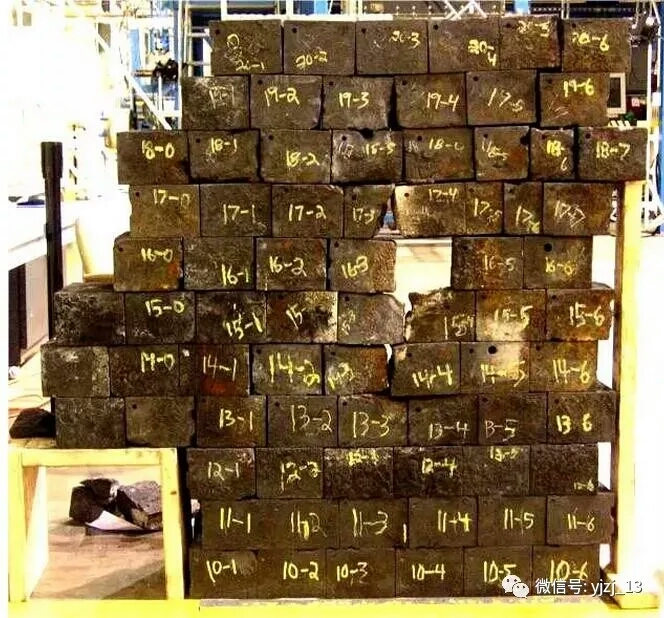 1.碳磚縫隙達(dá)70mm,環(huán)碳90mm環(huán)裂,后部900mm碎裂,碳磚在施工過(guò)程堆在火車站就嚴(yán)重變形,鉆鐵都說(shuō)明碳磚質(zhì)量過(guò)低(收縮與未焙燒)。