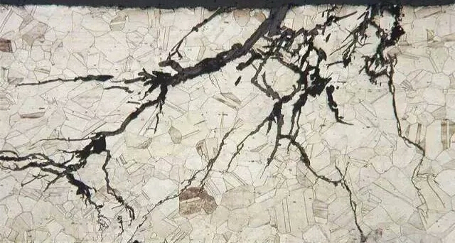 應(yīng)力腐蝕開(kāi)裂是奧氏體不銹鋼最常見(jiàn)的破壞形式。大家需要注意,應(yīng)力腐蝕開(kāi)裂取決于兩方面主要因素:其一,必須有應(yīng)力,它可能是外加應(yīng)力,也可能是殘余應(yīng)力;其二,應(yīng)力腐蝕開(kāi)裂敏感離子,比如鹵族元素離子,尤其以氯離子最為常見(jiàn)。應(yīng)用奧氏體不銹鋼的地方,時(shí)常不是使用其承受應(yīng)力的能力,因此應(yīng)該特別關(guān)注殘余應(yīng)力,因?yàn)樵诤新入x子的環(huán)境中,殘余應(yīng)力會(huì)造成其應(yīng)力腐蝕開(kāi)裂。去殘余應(yīng)力的方法是去應(yīng)力退火。