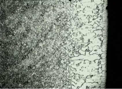 鋼表面脫碳層,白色為鐵素體,碳在晶界擴散速度更快晶界脫碳更為顯著
