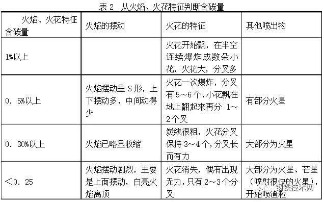 對(duì)于火花的研究,1804年起英國的門生?塔斯克斯(Manson Tacpues)、1929年給特(T.D.Gat)及日本“火花檢查法研究委員會(huì)”都曾從鋼品種檢查的角度系統(tǒng)研究了如何根據(jù)砂輪上磨出來的火花特征去鑒定鋼的品種。對(duì)于在煉鋼過程中如何用視覺掌握火花的方法的研究是極其貧乏的??椿鸹〞r(shí)感知的對(duì)象是運(yùn)動(dòng)物體,即火花。要看它分叉的數(shù)量,分叉是一種形狀變化?;鸹ǚ植嬷噪y以看到的原因是由其本身及四周的一些因素決定的,如爐口噴出來的碳花體積很小,很密,流動(dòng)速度很快,同時(shí)白色碳花又在白亮火焰的背景上,因此很難識(shí)別碳花,而碳花分叉更難辨別,因?yàn)樘蓟◤臓t口噴出后只在半空中開始分叉,而且分叉的時(shí)間極短促,所以要想觀察到碳花的分叉,就需要用視覺追蹤,把碳花作為一個(gè)運(yùn)動(dòng)物體的運(yùn)動(dòng)軌跡。此外要掌握碳花運(yùn)動(dòng)速度,因?yàn)樘蓟ㄔ诜植嬉郧耙档退俣?,在半空停留一下隨后分叉,所以還要掌握碳花在空中分叉的位置。碳花在半空停留時(shí)就注意觀察才能看到碳花分叉的數(shù)目。掌握碳花運(yùn)動(dòng)的規(guī)律,由時(shí)間空間定位來觀察碳花分叉情況,在實(shí)踐中證明了是個(gè)好方法。在剛開始學(xué)習(xí)看碳花時(shí),由于碳花很密,可以先從碳花最稀的地方選擇地找一個(gè)來觀察,這樣容易觀察到它的特征,這就是選擇性的部分觀察,學(xué)會(huì)部分觀察后才可進(jìn)行全部觀察。有的煉鋼工沒有掌握這一認(rèn)識(shí)活動(dòng)的規(guī)律,就始終不能看到碳花的分叉,目前在煉鋼工中不能判斷碳花的不乏其人。