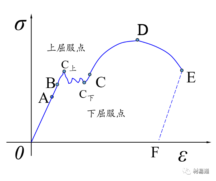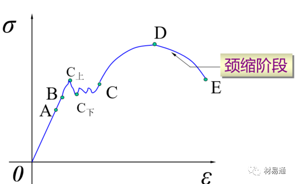 以低碳鋼的拉伸應(yīng)力應(yīng)變曲線為例。