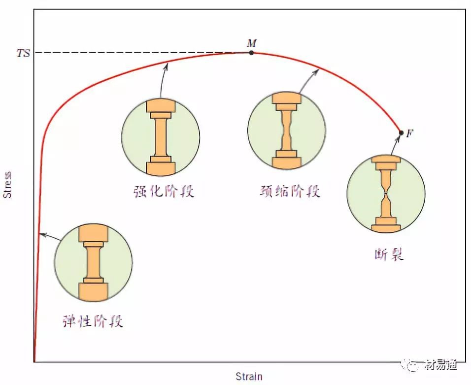 曲線最高點(diǎn)所對(duì)應(yīng)的應(yīng)力值記作,稱為材料的抗拉強(qiáng)度(或強(qiáng)度極限),它是衡量材料強(qiáng)度的又一個(gè)重要指標(biāo)。 強(qiáng)度極限是材料在整個(gè)拉伸過程中所能承受的最大拉力。