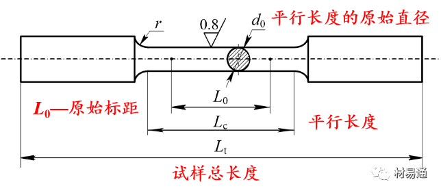 圓形橫截面拉伸試樣的形狀和尺寸符號(hào)