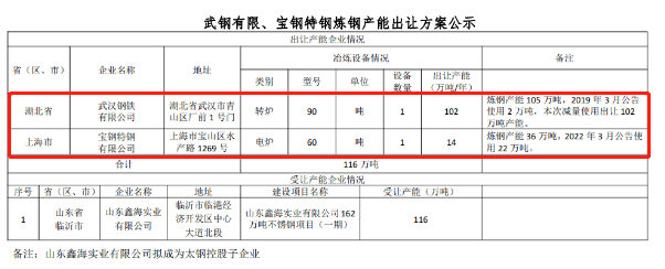 按照《國務(wù)院關(guān)于化解產(chǎn)能嚴重過剩矛盾的指導(dǎo)意見》、《國務(wù)院關(guān)于鋼鐵行業(yè)化解過剩產(chǎn)能實現(xiàn)脫困發(fā)展的意見》和《鋼鐵行業(yè)產(chǎn)能置換實施辦法》要求,經(jīng)國務(wù)院國資委復(fù)函同意,擬將武鋼有限轉(zhuǎn)爐產(chǎn)能以及寶鋼特鋼電爐產(chǎn)能出讓?,F(xiàn)將武鋼有限1座90噸轉(zhuǎn)爐102萬噸煉鋼產(chǎn)能、寶鋼特鋼1座60噸電爐14萬噸煉鋼產(chǎn)能出讓方案予以公示,公示期為2022年5月25日-6月22日,歡迎社會公眾進行監(jiān)督。