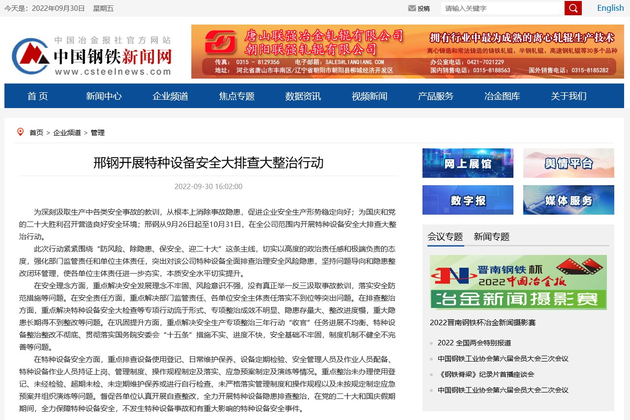 為深刻汲取生產(chǎn)中各類安全事故的教訓(xùn),從根本上消除事故隱患,促進企業(yè)安全生產(chǎn)形勢穩(wěn)定向好;為國慶和黨的二十大勝利召開營造良好安全環(huán)境;邢鋼從9月26日起至10月31日,在全公司范圍內(nèi)開展特種設(shè)備安全大排查大整治行動。