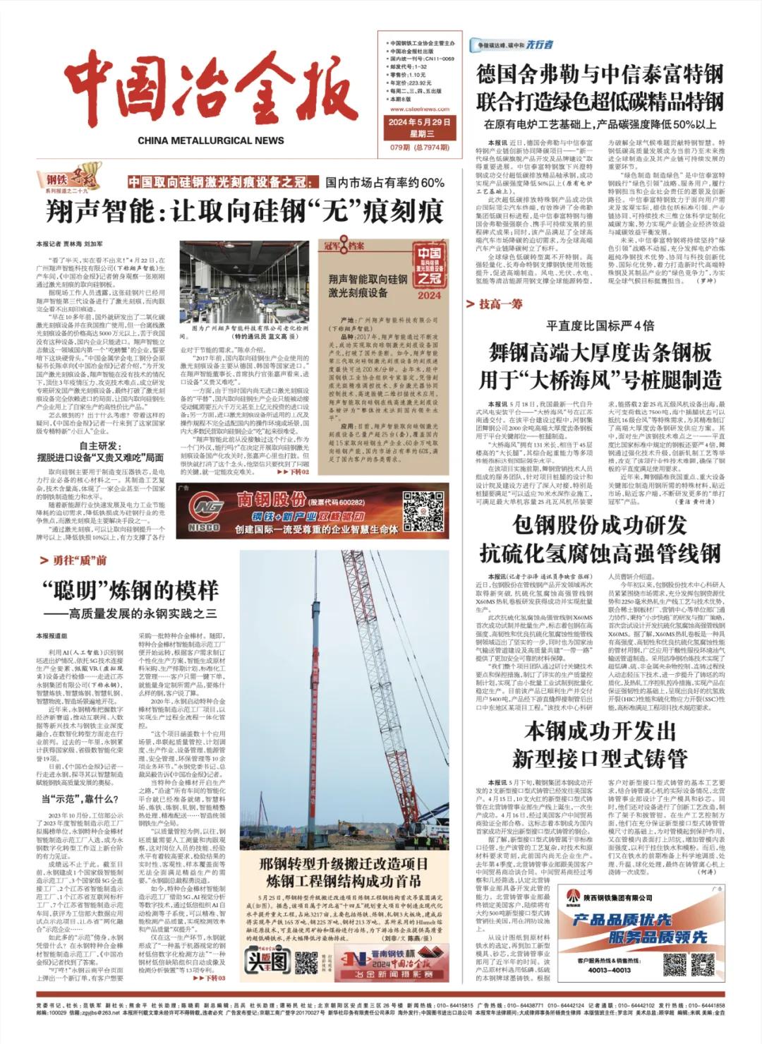 【媒體報(bào)道】中國(guó)冶金報(bào)“頭版主圖”報(bào)道邢鋼轉(zhuǎn)型升級(jí)項(xiàng)目進(jìn)展