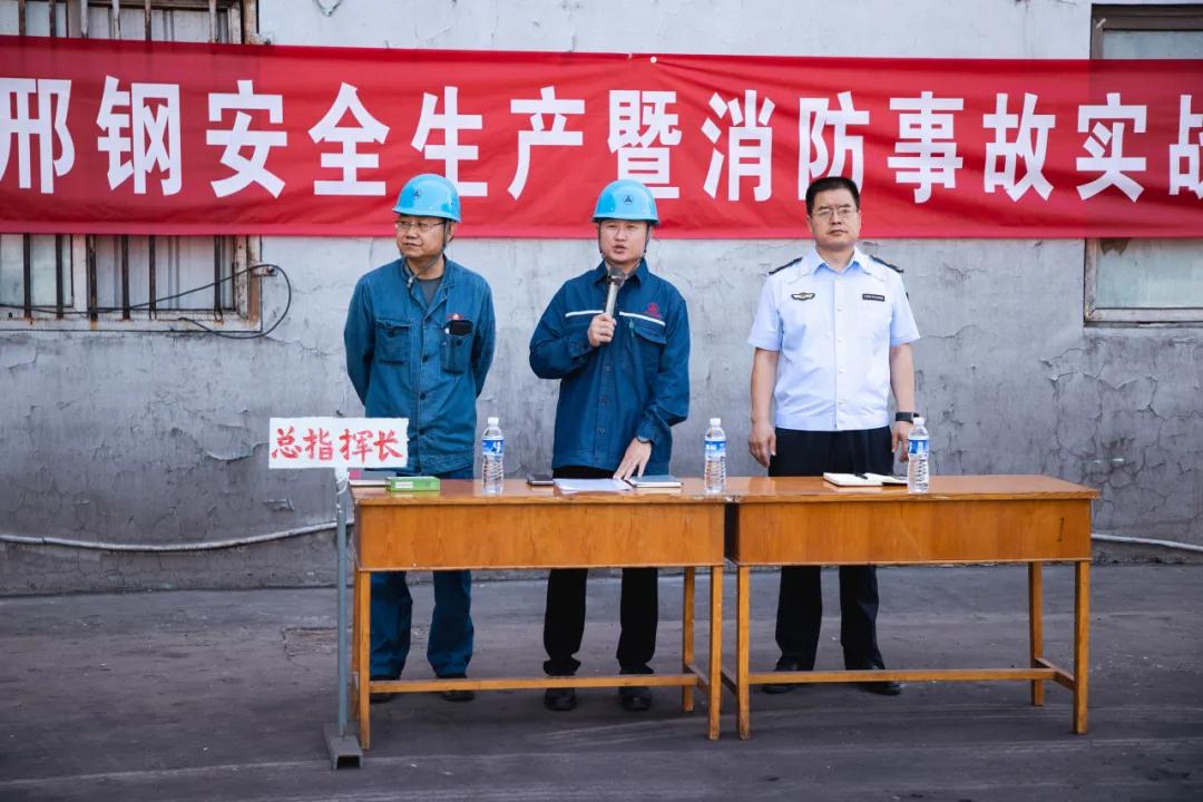 上午8點(diǎn)55分,邢鋼副總經(jīng)理李紅超宣布應(yīng)急演練正式開始。9時(shí),中控室氣體檢測(cè)報(bào)警設(shè)施顯示5#探頭報(bào)警,粗苯工檢查發(fā)現(xiàn)粗苯罐放空閥外側(cè)法門里側(cè)法蘭開裂,發(fā)生粗苯泄漏,隨即報(bào)告值班廠長(zhǎng),焦化廠粗苯儲(chǔ)罐事故專項(xiàng)應(yīng)急預(yù)案響應(yīng)啟動(dòng)。警報(bào)一響,應(yīng)急指揮部迅速成立,現(xiàn)場(chǎng)所有人員在指揮長(zhǎng)的指導(dǎo)下,按照應(yīng)急預(yù)案有序開展了處置、救援等應(yīng)急程序。線材廠、煉鋼廠、煉鐵廠、質(zhì)控部等單位組織人員到現(xiàn)場(chǎng)觀摩學(xué)習(xí)。