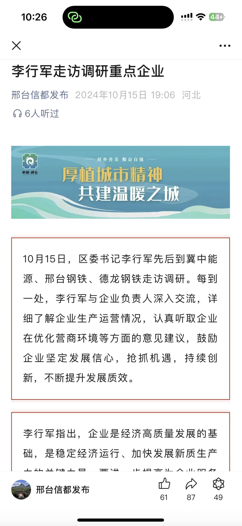 邢臺信都發(fā)布:李行軍走訪調(diào)研重點(diǎn)企業(yè)