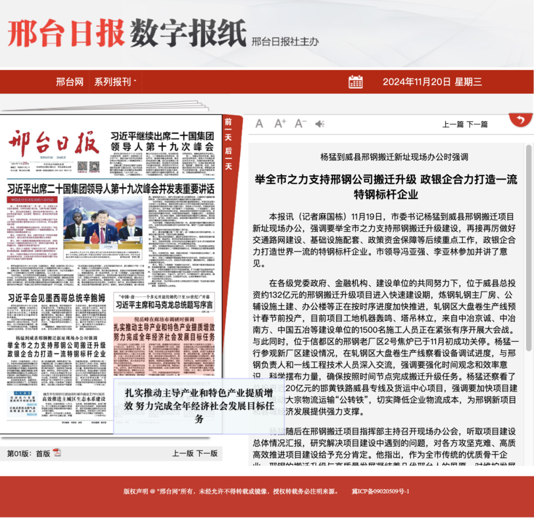 《邢臺(tái)日?qǐng)?bào)》11.20頭版報(bào)道